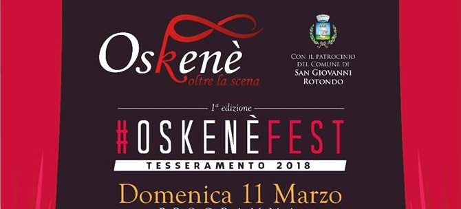 “Oskenè Fest – Tesseramento 2018” è una giornata dedicata interamente al Teatro tra spettacoli e laboratori con possibilità di sostenere mediante la sottoscrizione della “Tessera Oskené-Oltre la Scena” le sue attività e si svolgerà nella nostra città il prossimo 11 marzo.