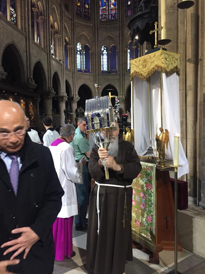 La peregrinatio del cuore di Padre Pio è cominciata sabato mattina quando il guardiano del convento di San Giovanni Rotondo, fr. Carlo Laborde, ha portato la reliquia di Padre Pio nella cattedrale di Notre-Dame di Parigi.