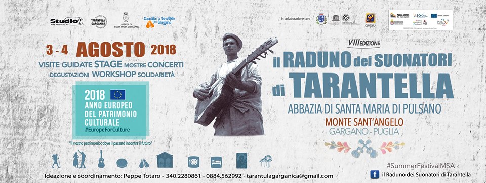 Tutto pronto per l’ VIII edizione de “Il Raduno dei Suonatori di Tarantella”, in programma venerdì 3 e sabato 4 Agosto 2018 presso l’Abbazia di Santa Maria di Pulsano, a 9 Km da Monte Sant’Angelo.