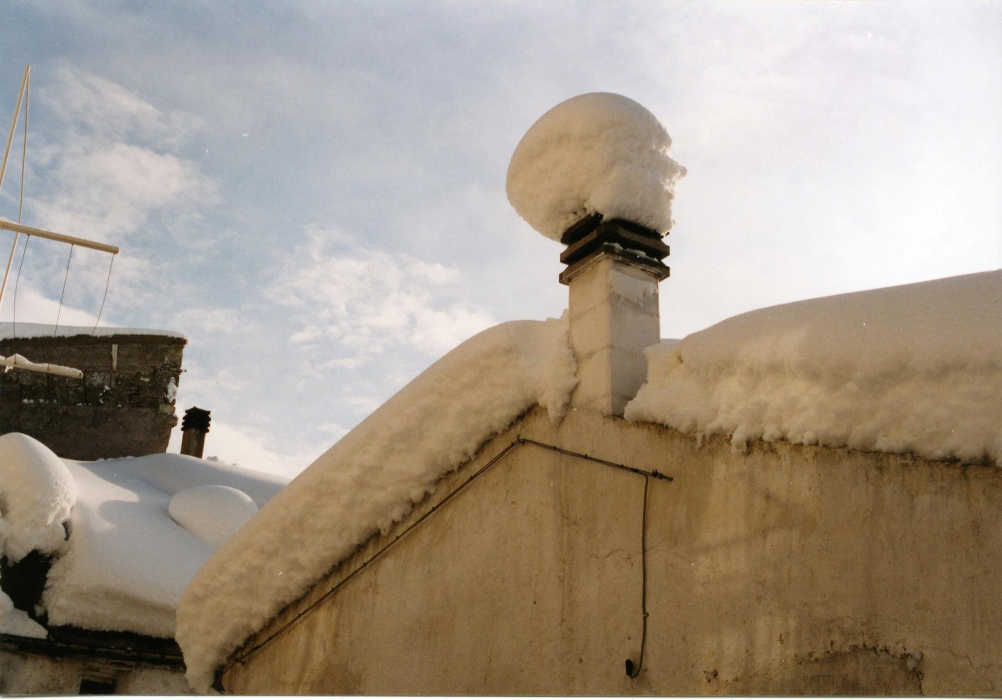 A casa nostra non riusciamo ad aprire per una settimana la porta (con apertura verso l’esterno) del balcone esposto a nord: la tantissima neve accumulata si è completamente ghiacciata, così decidiamo di rompere i vetri e di liberare il balcone con una pala.