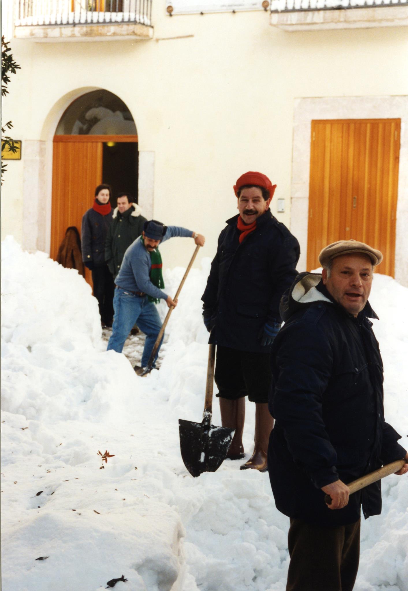 Il paese fa enormi sforzi per tornare alla normalità, la neve della sola Piazza Europa viene ammucchiata nello spazio prospiciente la chiesa di San Giuseppe Artigiano (davanti al monumento ai Caduti), si viene a creare un colle artificiale alto circa 3 metri e vasto quanto tutta l’area disponibile; le ruspe caricano la neve sui camion che la portano fuori dal centro abitato, ma subito altra neve viene accumulata dalle ruspe nella medesima zona: si lavora a ciclo continuo.