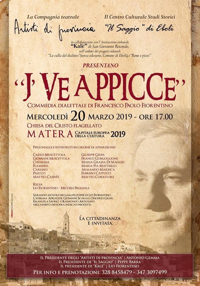 Di Lio Fiorentino, Massimo Cariello, Peppe Barra e Filomena Domini giunto alla terza edizione e di “Rime e pizzi” di Filomena Domini in collaborazione con l’associazione culturale “Kalé” di Lio Fiorentino Parlare de j ve appicce.