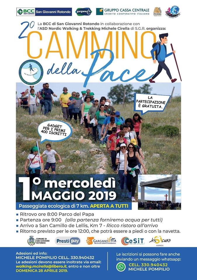 Le iniziative per i cento anni della BCC di San Giovanni Rotondo continuano: il 1 Maggio 2019 si svolgerà il 2° Cammino della Pace, un percorso di 7 km nel fantastico scenario del sentiero natura San Camillo, sarà un momento per ammirare il nostro bellissimo territorio.
