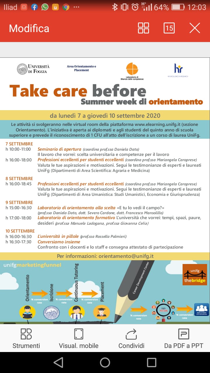 L’Unifg pensa alle esigenze degli studenti ancor prima delle iscrizioni: sta per partire la Summer Week “Take care before”, una speciale settimana di #orientamento per chiunque voglia iscriversi all’università.