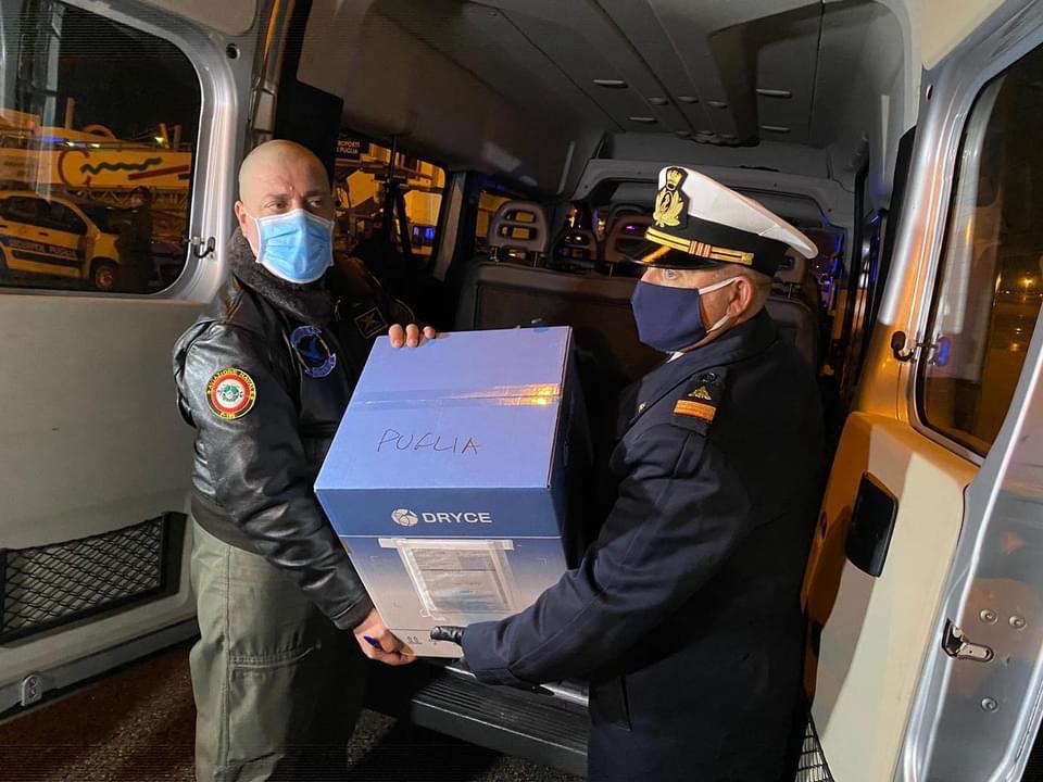 La consegna è prevista alle ore 8 di domani al Policlinico di Bari, dove le dosi verranno suddivise nei contenitori termici e consegnate nei punti di vaccinazione delle 6 province pugliesi per la somministrazione.